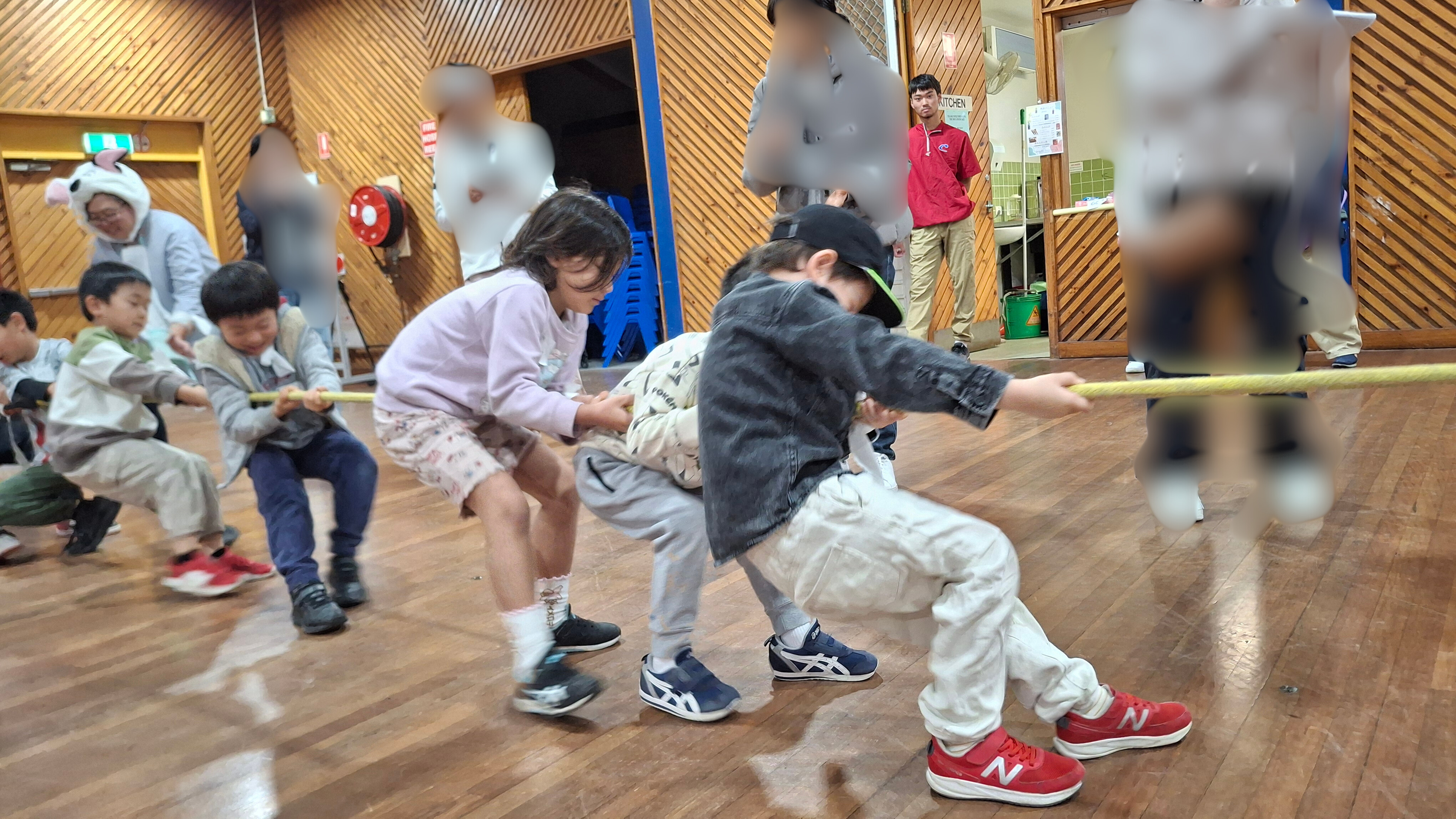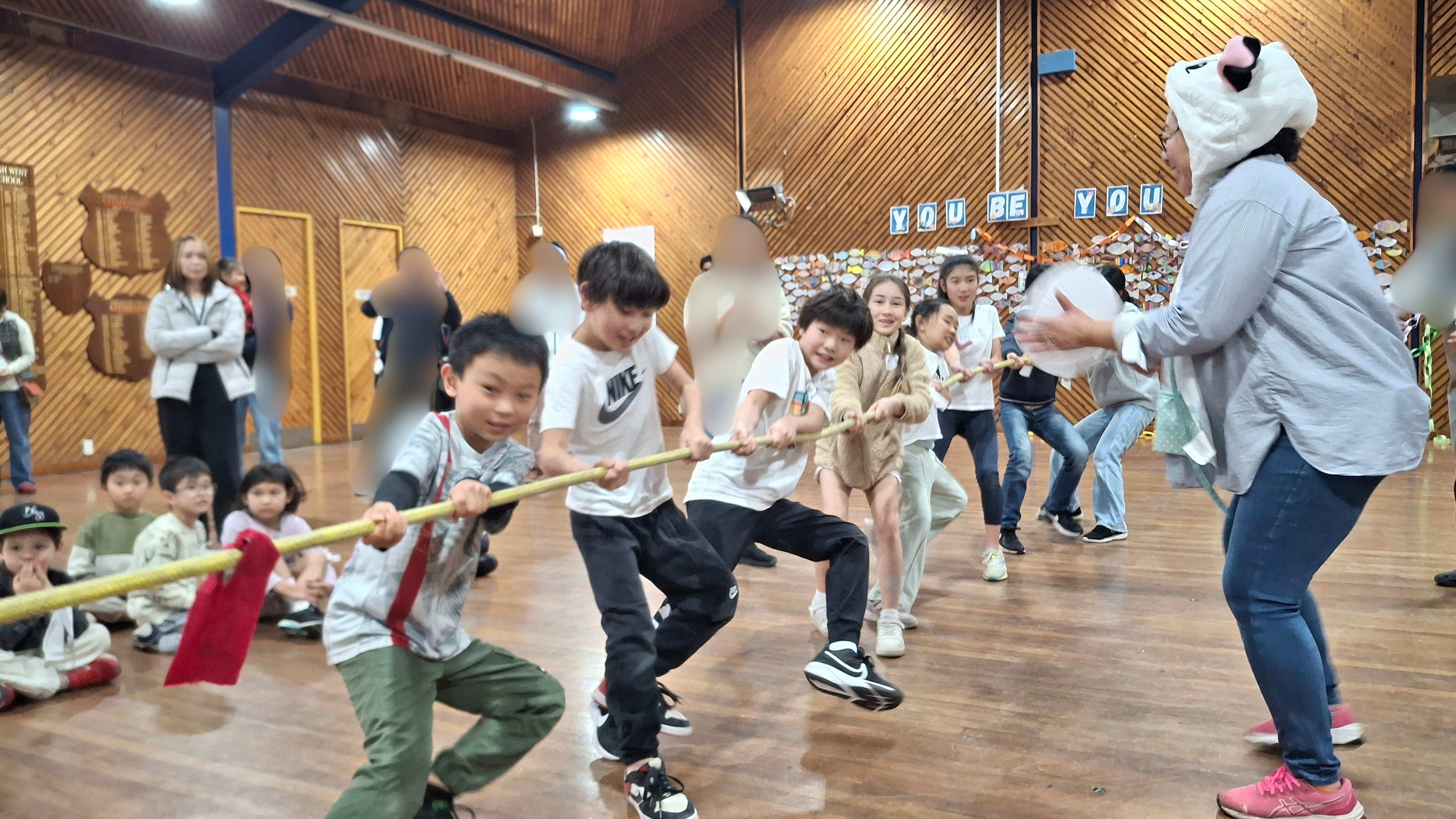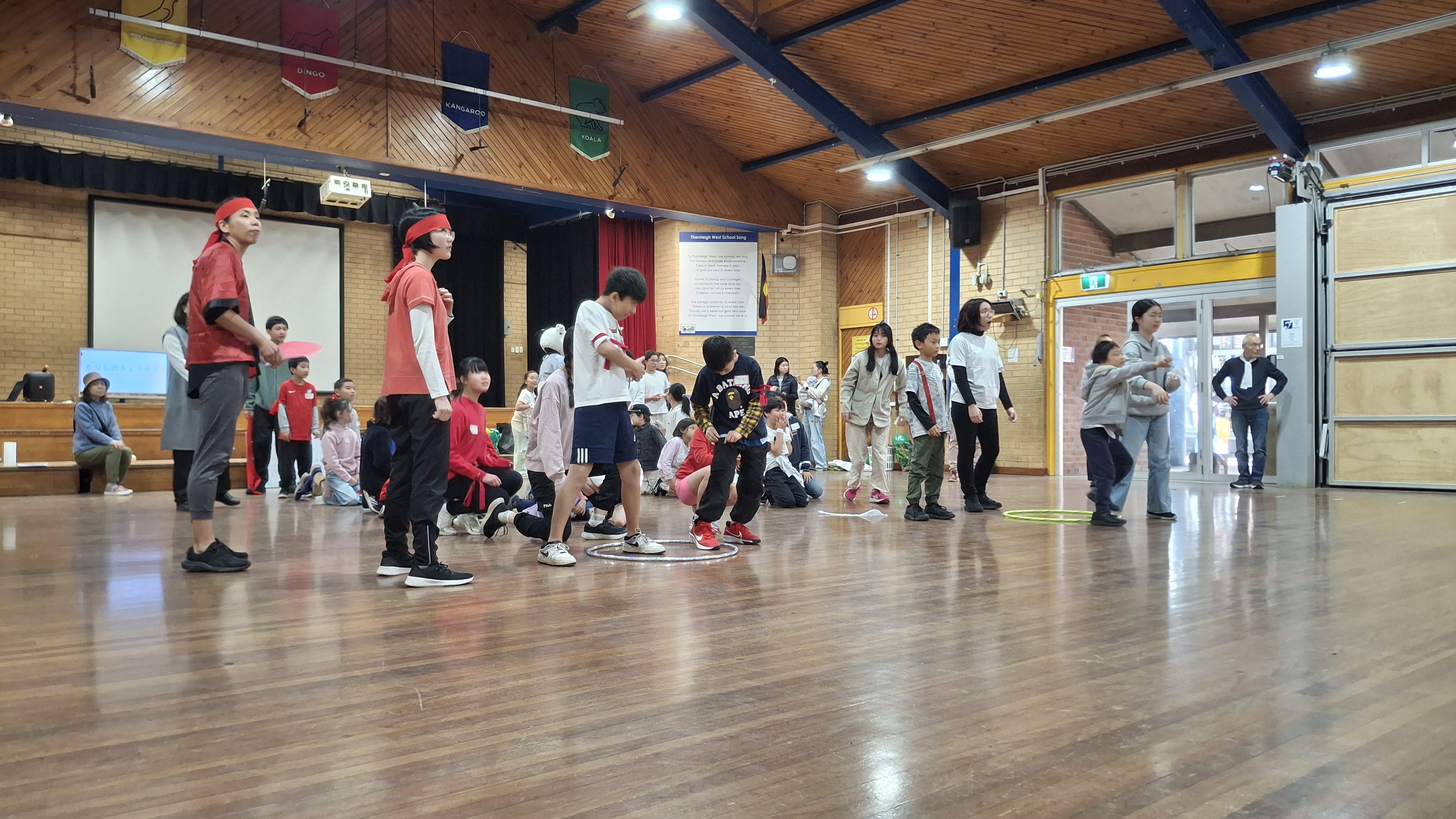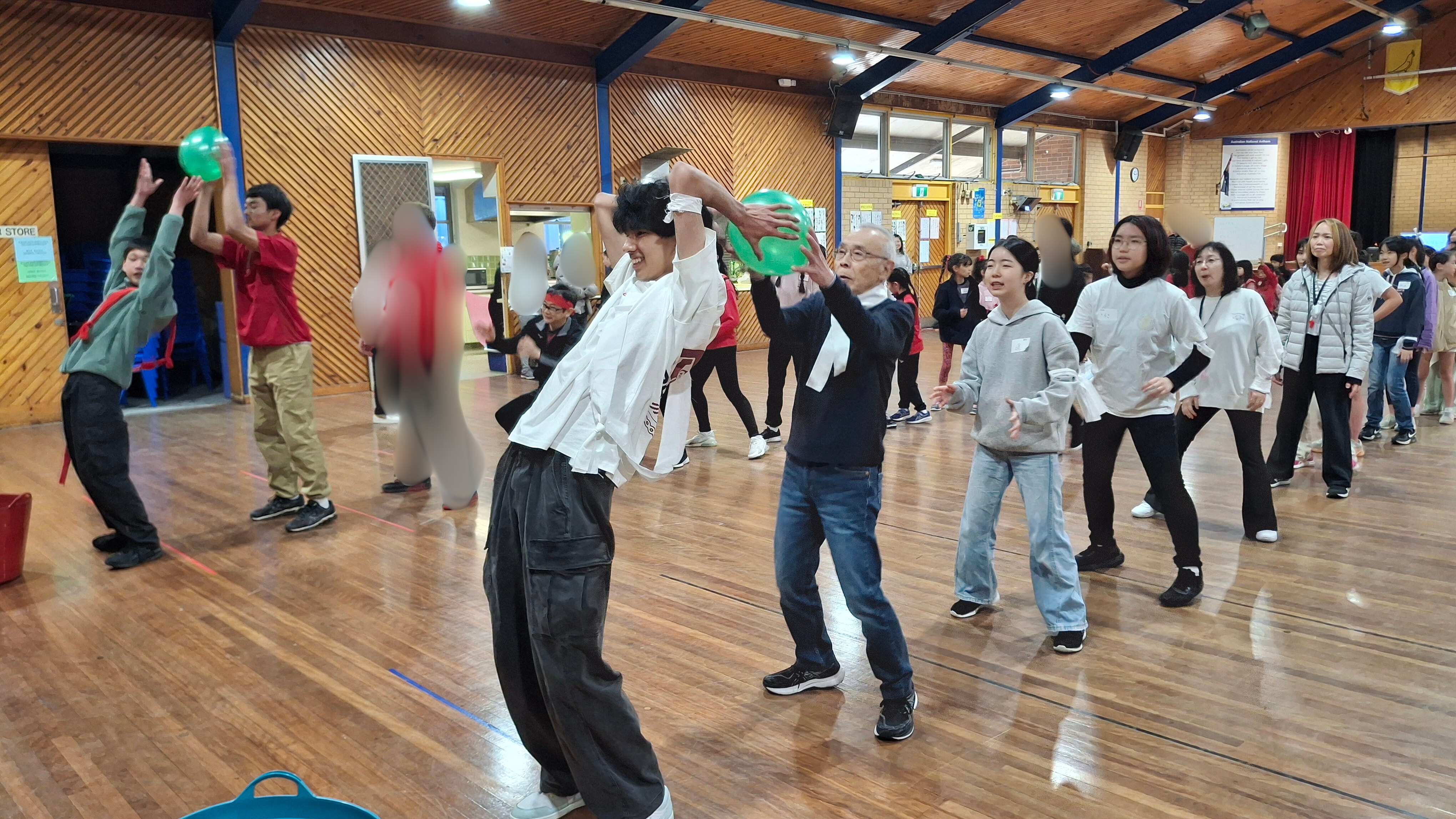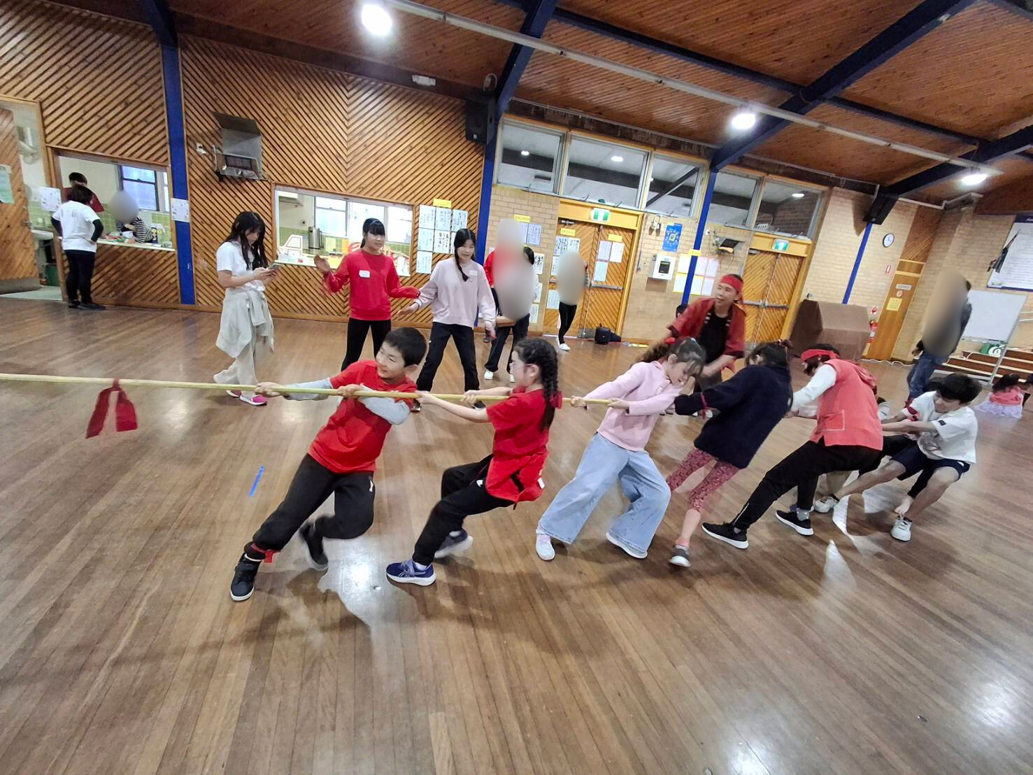 学校ホールでカルタ大会の後、三年振りにミニ運動会が行われました。 特進クラスの生徒をお手本に、キンディからみんなでラジオ体操をし、 その後は紅組、白組に別れて、様々な競技を楽しみました。 玉入れなどの日本の競技を初めて体験する生徒も多く、現地校とは違った運動会をとても楽しんでいました。