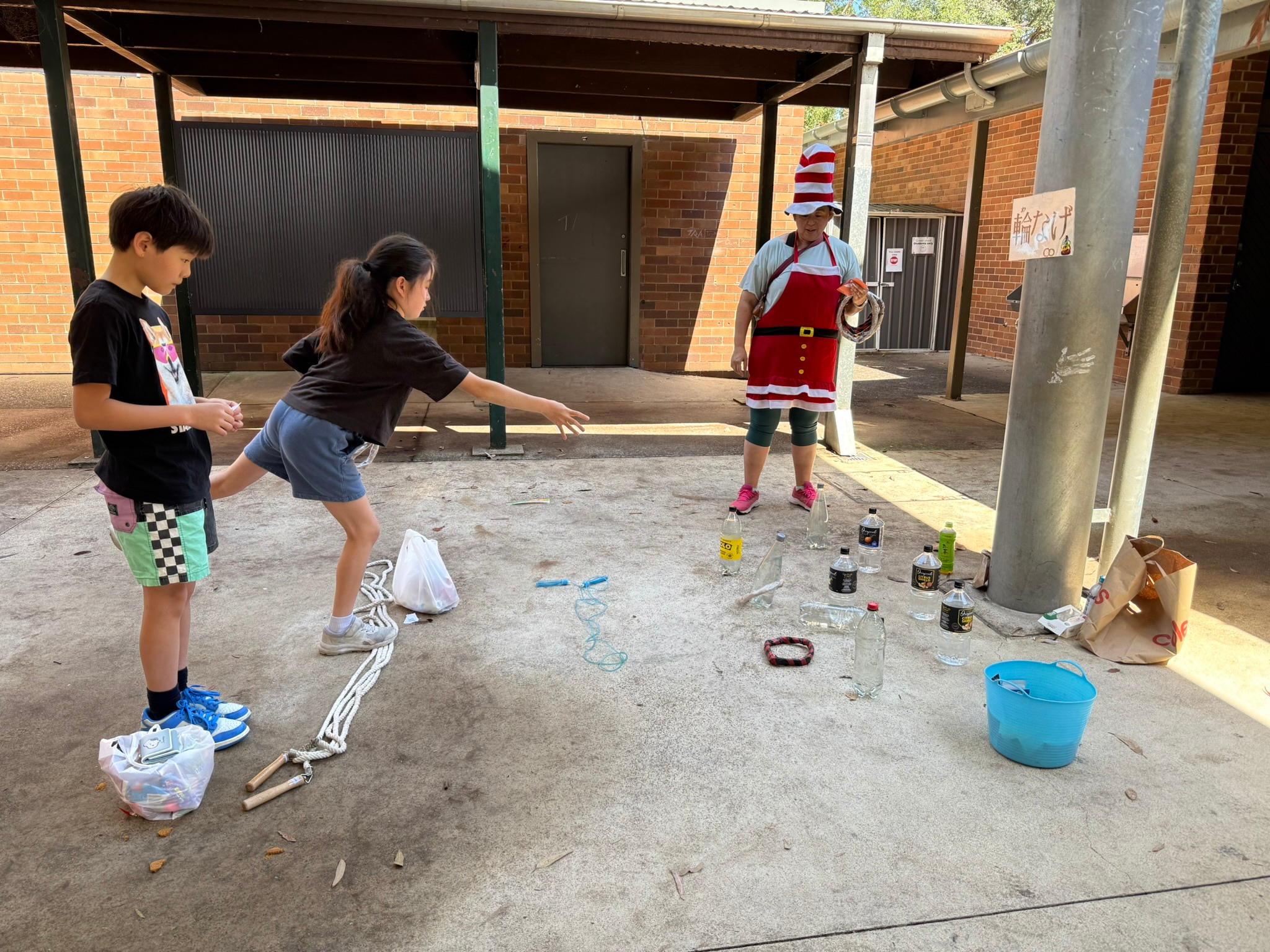 12月9日学習発表会の後に1年最後のイベントのお楽しみ会がありました。 輪投げやラッキーディップ、流鏑馬、ヨーヨー釣り、金魚すくい、クラフト、ラジコンレースなどのアクティビティから、特進クラスのミニたい焼きやフルーツポンチ、お菓子にラムネドリンクなどフードストールも出て、猛暑の中でしたが子どもたちの楽しい思い出になりました。