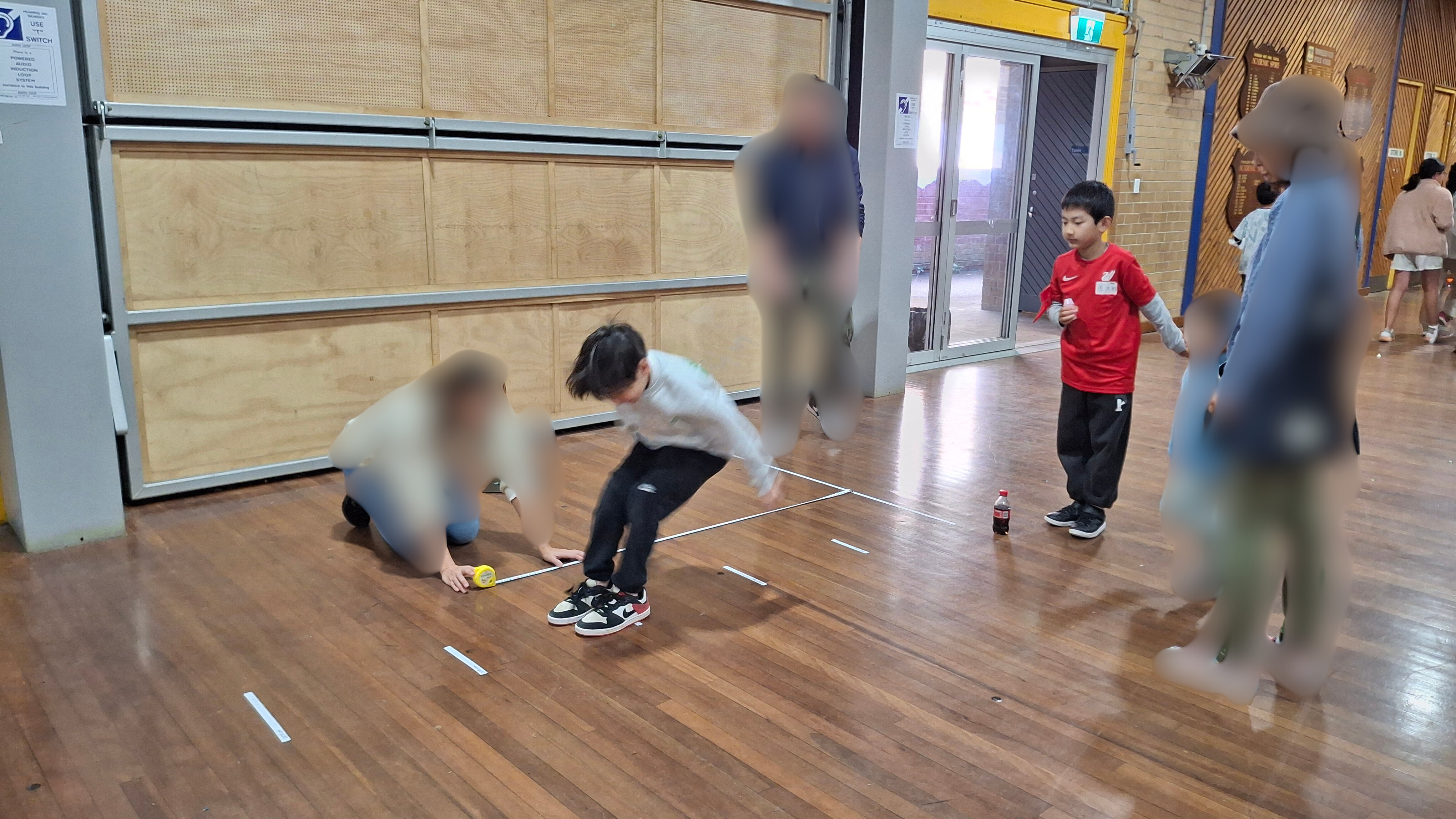 初めての企画で自由参加で体力測定が行なわれました。垂直ジャンプ、立ち幅跳び、反復横跳びの3種類を測りました。低学年から高校生まで多くの生徒が参加しました。